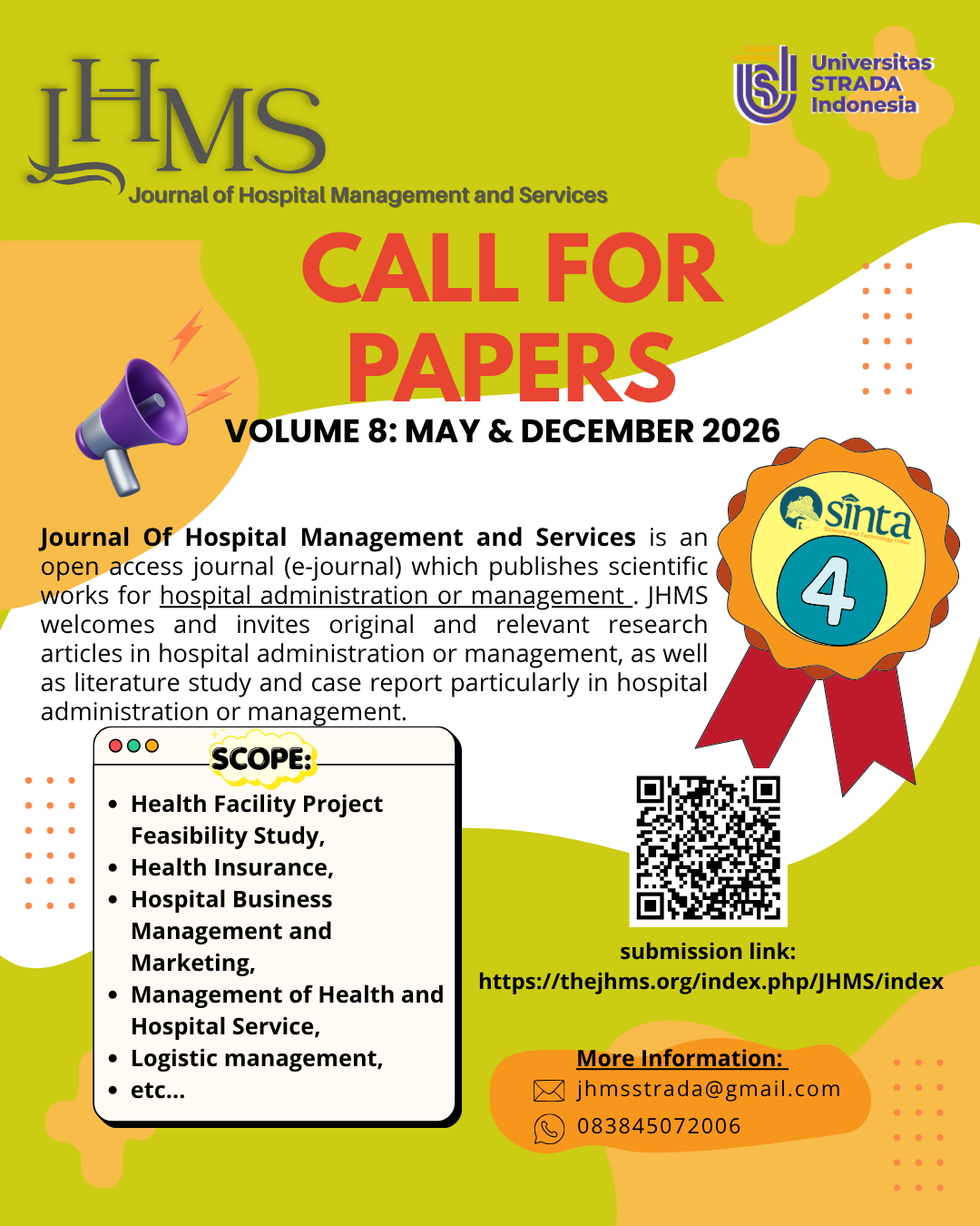 We are pleased to announce that the Journal of Hospital Management and Services (JHMS) has officially achieved national accreditation (SINTA 4) based on the Decree of the Director General of Research and Development No. 156/C/C3/KPT/2026, dated April 7, 2026.